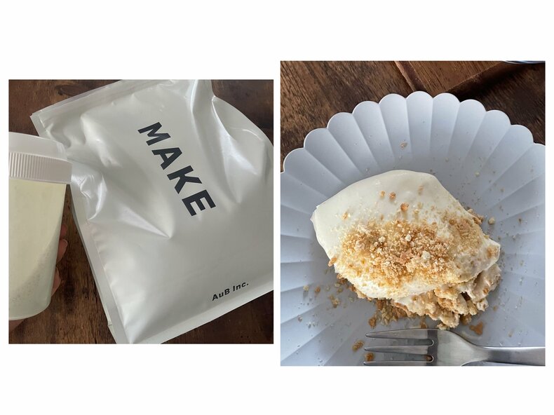 運動後はマルチ栄養プロテイン"オーブメイク"を。こちら、13種類のビタミンを含むとか!おやつはビタミンを含んだチーズケーキを手作りして食べたり。(もちろん甘さ控えめ♡)