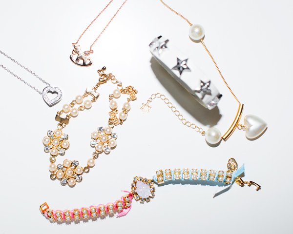 「ハートやパールなど女の子らしいモチーフを選ぶことが多いですね。左のパールのアクセサリーは、台湾に行った時 に欲しくてずっと見ていたら、お店の人がプレゼントしてくださって!感激しました(泣)」