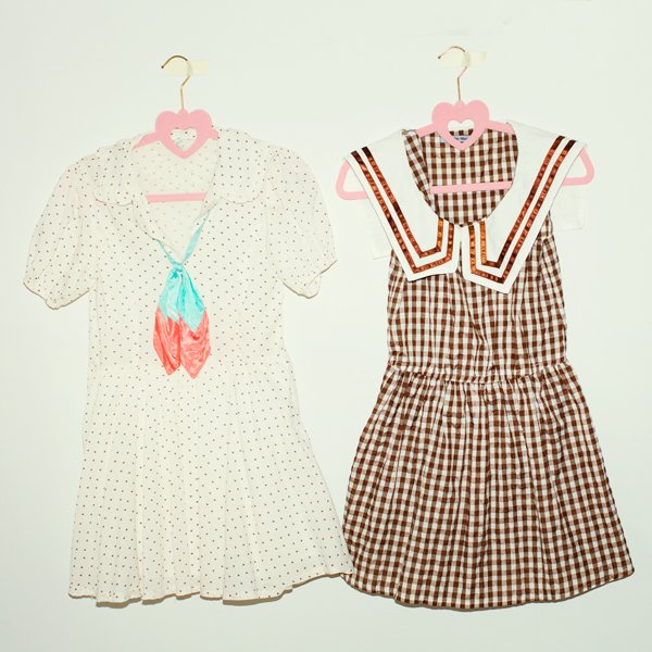 LEFT/「中学生の時からきているワンピース。大好きなセーラー襟もチェックも、今でも変わらず好きなデザイン」