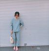 「さらっと合わせるだけで上級者を気取れるパンツセットアップはいくつあっても便利♡ このコラボセットアップは、表面感のあるコットン素材とダスティーなサックスブルーがとってもスタイリッシュ。適度に体が泳ぐシルエットが大人のこなれ感も演出してくれます。」