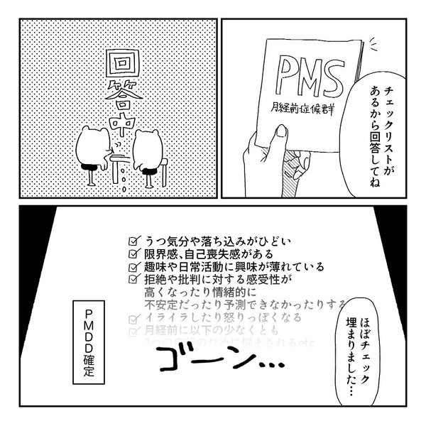 自分では気づいていなくても、婦人科を受診してみたら「PMDD」だったと言う場合も。Instagramを中心に活動している、漫画家・イラストレーターのモー子さんもその一人。モー子さんの体験談は、以下の漫画をチェック!PMDDへの理解がより深まるはず。