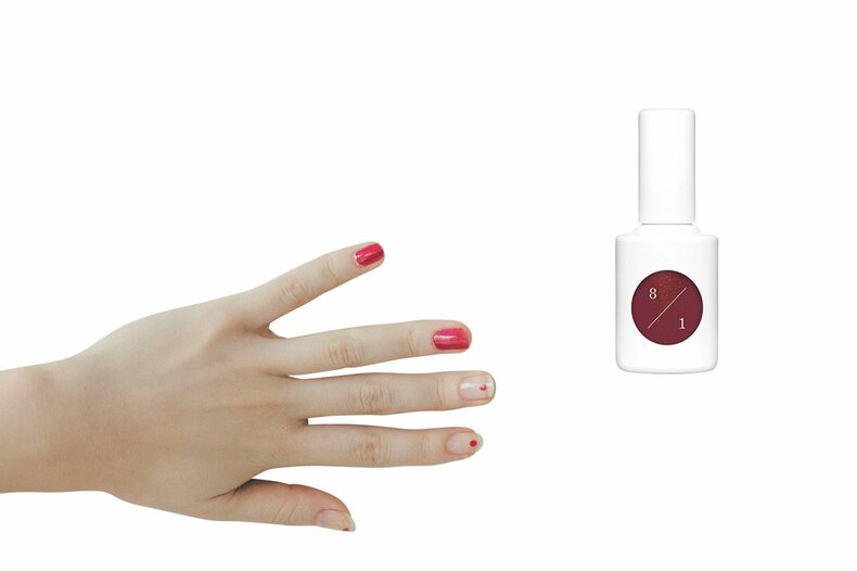 全面に塗ったり、素爪にちょこんと点置きしたりと塗り方を変えるのがポイント。