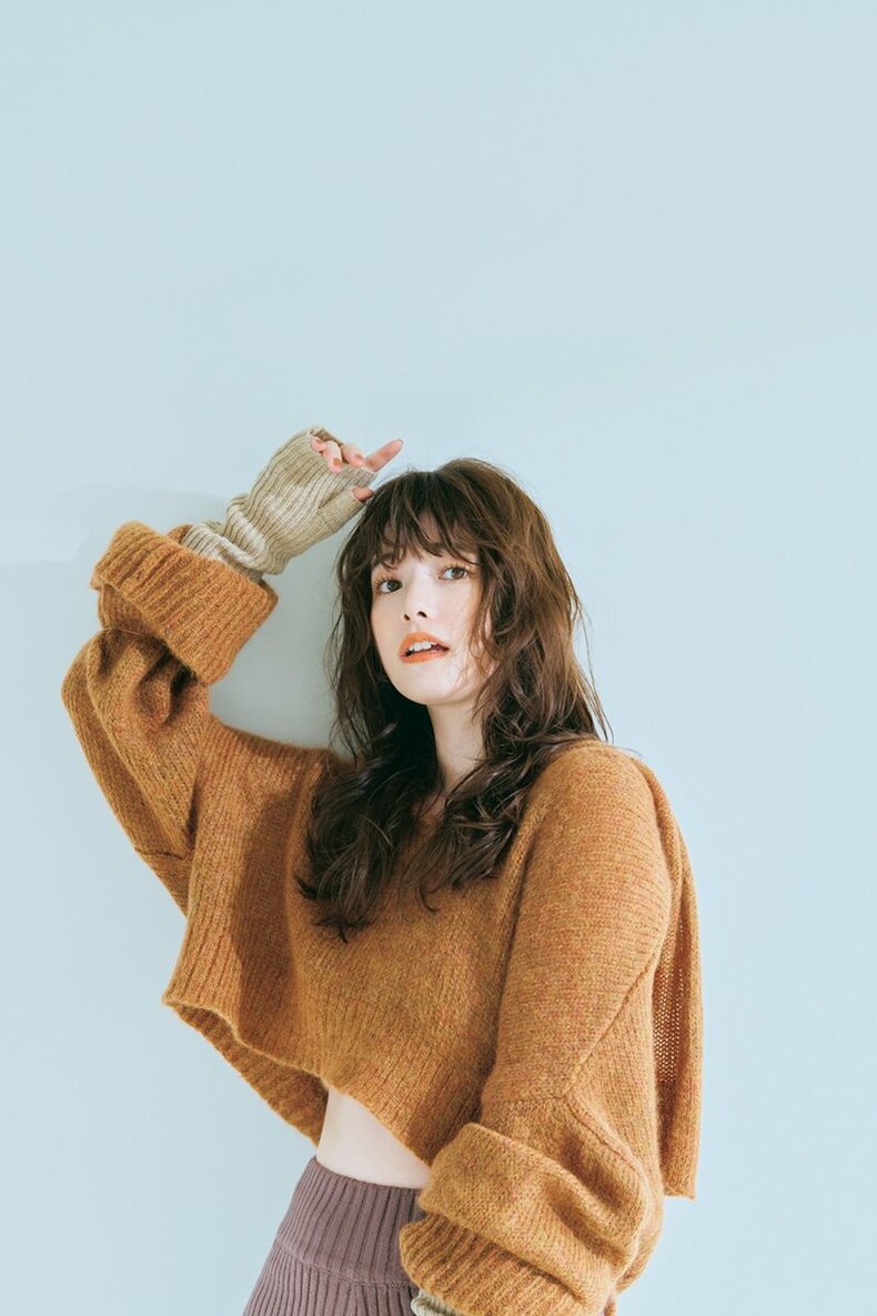 全身ニットのファッションにボリュームパーマを合わせたら反則級の愛らしさに。