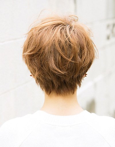 すっきりと切り込んだサイドバックがメンズライクな表情を呼ぶショートレイヤー。ドライカットで質感を調整して隙間や束感を潜ませる。12トーンのプラチナベージュで、透明感のあるクールなハイトーンに。ドライワックスで毛束をつまんで動きをつけて。