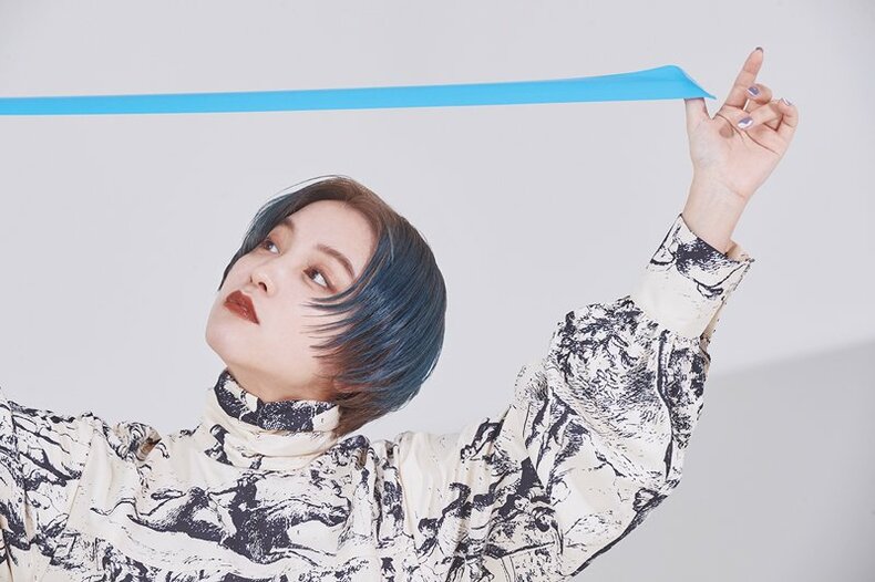 根元ベージュからのブルーのグラデは、色で遊びつつ、おしゃれ感はちゃっかりキープできる凄腕推しカラー! ウィッグ感、コスプレ感が顔をのぞかせないように、ブルーの色味はきっちり入れつつも、パキッとしすぎないくすみ感のあるカラーに仕上げを。肌なじみもバツグン。モデル/大塚りりあさん(ar girl)