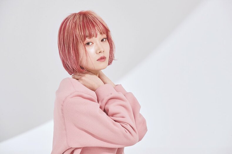 おしゃモードなボブスタイルに合わせたいのは、金髪のハイライトがパラリと交じるコットンピンクの柔らかカラー。全頭ブリーチ後、発色のいいピンクをベースに、ハチ上のみクリア+ベージュでハイライトをプラス。メイクもファッションもオールピンクでコーディネートして憧れの韓流ガール風に。モデル/ななかさん