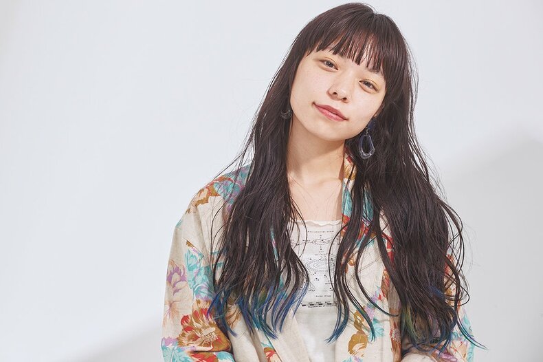モンスターズ・インクの世界観をイメージした多色カラーを毛先に入れ、暗髪でもにぎやかに。毛先をブリーチし、細かくピンクラベンダー、イエローグリーンのハイライトをプラス。