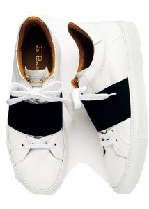 ここ数年、トレンドになっている白スニーカーは、ちょっとひねりを加えたデザインをチョイス。バイカラーのスニーカーでオシャレに。¥35,000/ヴィア ローマ 15(シップス 渋谷店)