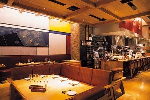 ハイセンスな内装の広い店内はオープンキッチン。カップルで行けば、洗練された大人のデートが楽しめそう。
