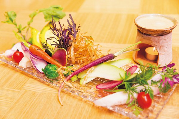 鎌倉野菜を盛り合わせたバーニャカウダはヘルシーでやせちゃうけど、何を食べてもハズレない美味しさ。