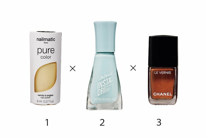 ネイル自体を変えなくても、大人っぽくしたい時はベースを3に入れ替えるだけで、全く印象の違うNEWなデザインを楽しめる。