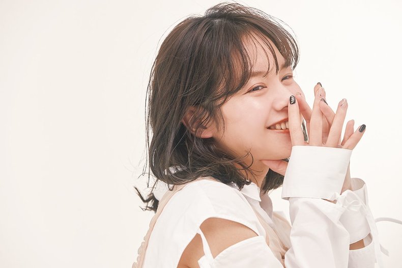 ペールトーンやホワイトなど、明るい色の服を主役にできるシンプルミディ。ただの地味ヘアにならないよう、重めベースにレイヤーを入れることでふんわりとエアリーな束感をプラスする。夏未さんの底抜けに明るい笑顔や洒落感を最大限に発揮するため、ツヤ肌、セミウエットな質感に仕上げるのもポイント。