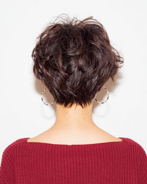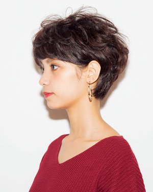 モードにもカジュアルにも転ぶ、多面性のあるショートの魅力はずるいほど。トップのふわっとした動きと、襟足や耳まわりのスッキリ感のメリハリを利かせたのが、このスタイルのポイント。トップに動きが出るように根元からパーマをかけ、ボトムはピンパーマでタイトにボリュームを抑えて。モデル/佐々木まゆさん