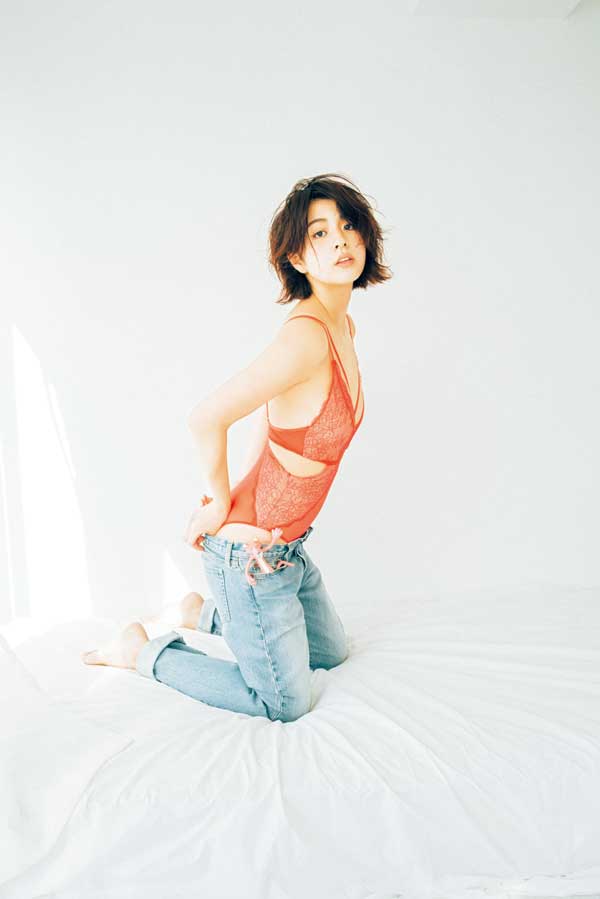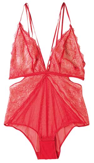 レースの透け感が加わることで赤もヘルシーな印象に。ボディスーツは難易度が高そうに見えるけど、実はウエストまわりがすっきりする分、おしゃれに最適。愛しいやつなのです。ボディースーツ¥2,777/H&M(H&M カスタマーサービス) デニムパンツ¥16,000/ナイン グラウンド(ナイン 青山店)