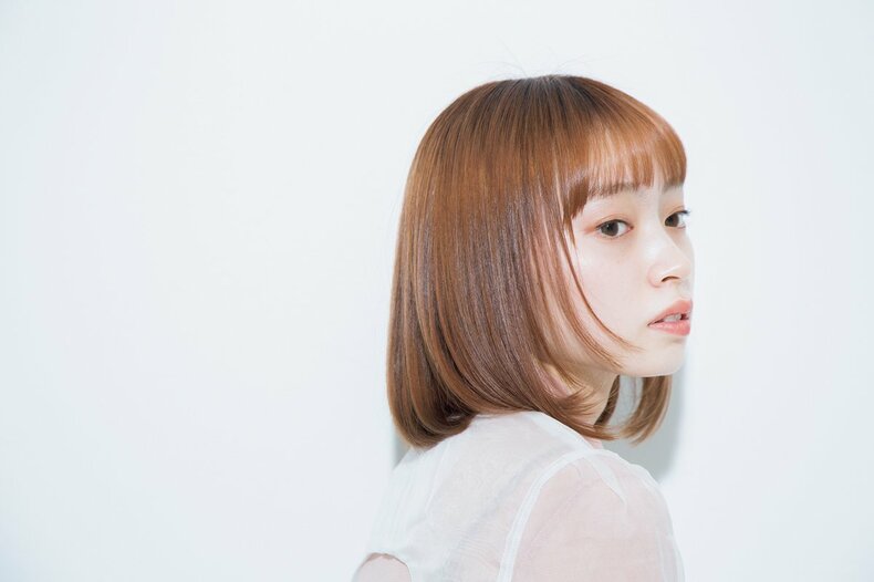 時間をかけず、ストレートアイロンを根元から通しつつ、毛先は手首を内に曲げてほのかな内巻き曲線にする。ボブのお手本みたいな仕上がりに。