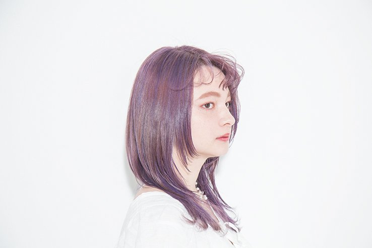 ちょいミルキーなバイオレットは、凛々しいのにリラクシーな表情。バレイヤージュベースの髪をブリーチで明るくし、濃いめのバイオレットとハイトーンピンク、少量のライラックをブレンド。ブラウンみがほとんどないカラーだから、透明感が高まって血色感もアップ。