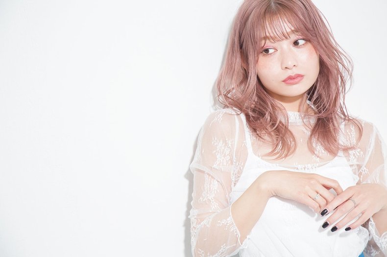 みんなが大好きなピンクをホワイトブレンドにして恋仕様にアプデ♥ ブリーチベースの髪に、ホワイトピンクでオンカラーして淡〜い薄ピンクに仕上げる。子供っぽくなりすぎないように、ゆるっと脱力カールにするのが◎。可愛いとキレイを両取り!