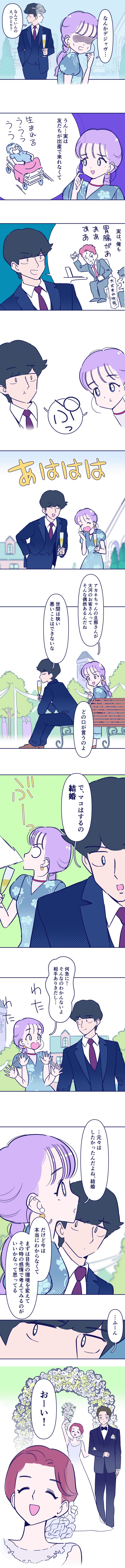 ついに旬と同棲を始めることになった占いちゃん。男性は同棲=結婚なのか?など色んな気持ちに囚われる。そんな中、旧友アカネちゃんの結婚式に参列すると、なんと元カレ大河がいて…