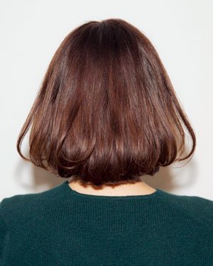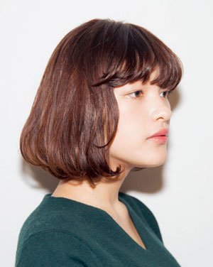 好感度が高いシンプルなボブスタイルも、前髪を散らして、ところどころに隙間をつくり抜け感をプラスすればトレンド感が一気にアップ。あごラインの前上がりボブを縦スライスで間引いて軽さを出し、毛先に1回転半の平巻きでパーマをかけて自然なボリュームをつける。前髪にも1回転パーマを。8トーンのコバルトアッシュで深みのあるツヤ髪がお目見え。モデル/未来蕗さん(ar girl)