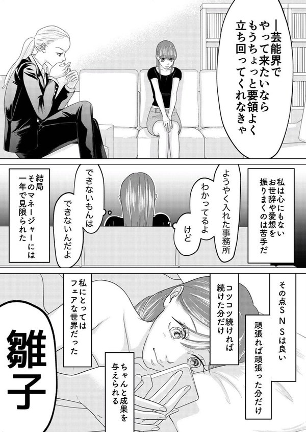 前回のあらすじPR会社に勤める橘カレン(27)は、東京で努力を重ねた「インフルエンサー」。2万フォロワー程度の自分がインフルエンサーを名乗っていいのか悩む最中、展示会でS級インフルエンサー・ヒナに遭遇! 彼女がくれる的確なアドバイスと優しい言葉につい涙ぐむカレン…。一方ヒナはそんなカレンの姿を見て、過去の自分を思い出すのであった。