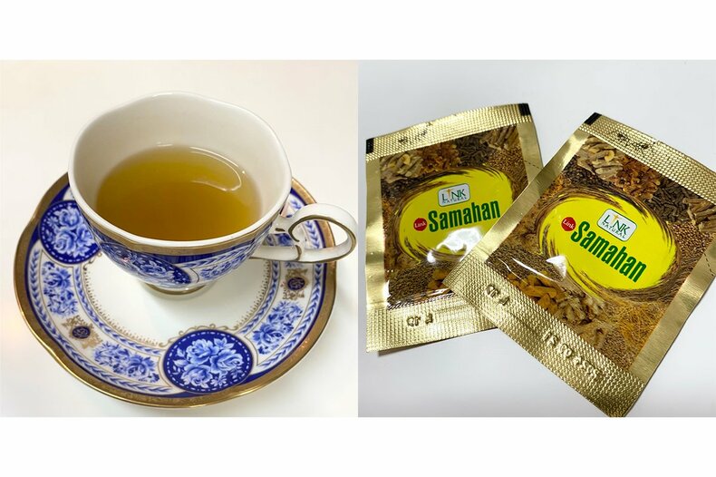 サマハンはきび糖、ブラックペッパー、ジンジャー、クミンなど14種類のスパイスやハーブがブレンドされた、スリランカで古くから飲み続けれられているアーユルヴェーダティーです。
