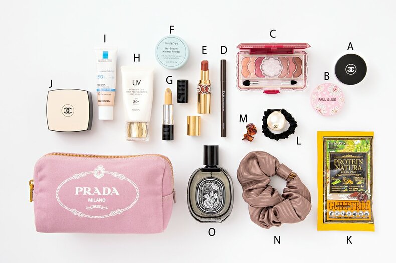 「仕事の時にも持っていくので、たっぷり入って収納力もバツグンなPRADAのポーチに。