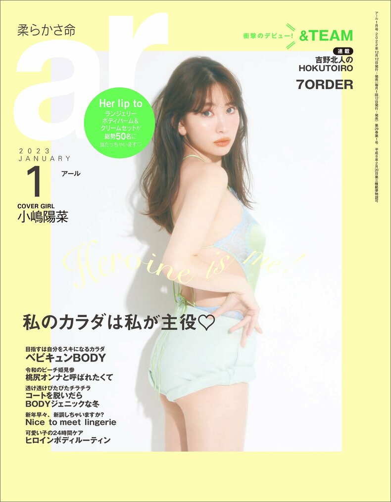2023年ar1月号(12月12日発売)の表紙に、タレントで経営者でもある小嶋陽菜さんが初登場!