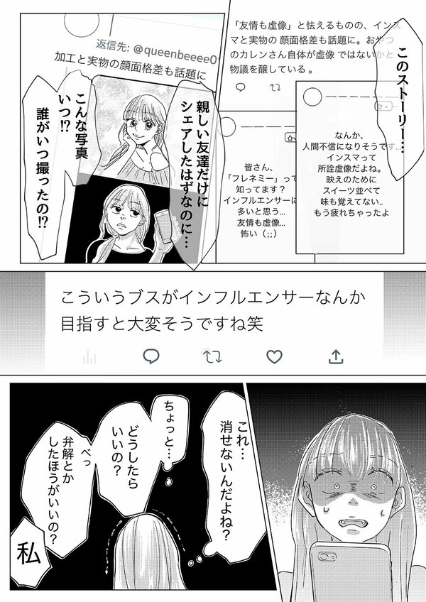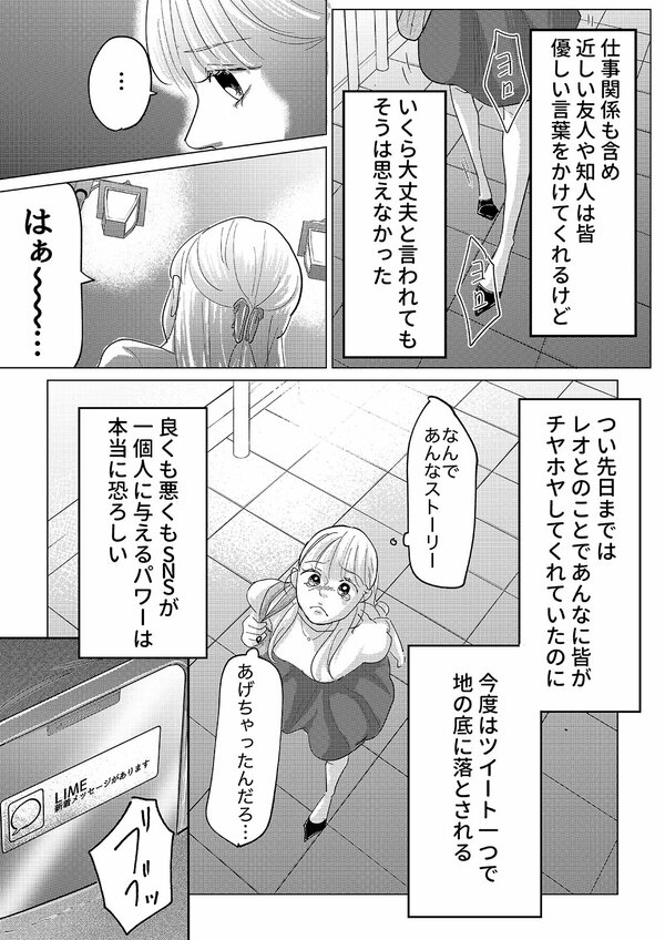 前回のあらすじ PR会社に勤める橘カレン(27)は、東京で努力を重ねる「インフルエンサー」。帰国子女のイケメンインフルエンサー・レオから “1年限定の結婚” を前提としたプロポーズを受けたカレンは、デリカシーのない提案に怒りを覚えつつもトキメキを抑えらず…!? そんなカレンを余所に、レオは勝手に撮影した写真を使って「プロポーズした」という書き込みと共にストーリーズをアップ。その投稿は瞬く間に拡散され話題となり、職場や友人からも祝福を受ける羽目に。複雑な心境の眠りについたカレンが翌朝目にしたものは…?