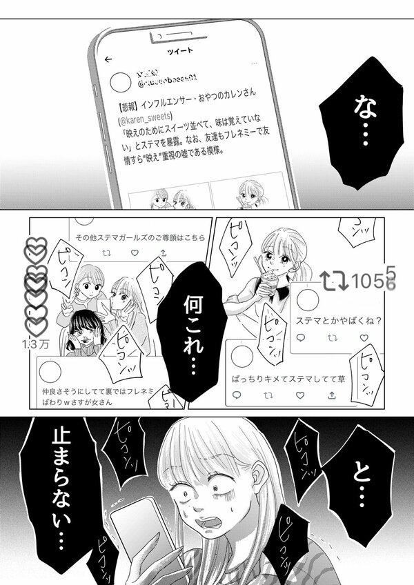 フォロワー数、いいね数、コメント数…。常に数字を背負ってSNSの投稿を続けるインフルエンサーのリアルを描く漫画連載「あなたの♡がなくても」がスタート! フォロワー2万人のスイーツインフルエンサーの橘カレン(27)が足を踏み入れた”SNS沼”とは…?