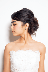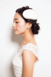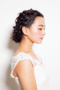 永遠に不滅な人気を誇るクラシカルなボンネと、あえてあまりくずしすぎないキレイめの編み込み。そして、ヴァージンな黒髪。ウエディング業界のトリプルスリーが揃ったら、永遠に朽ちることのない輝きが手に入りそう。