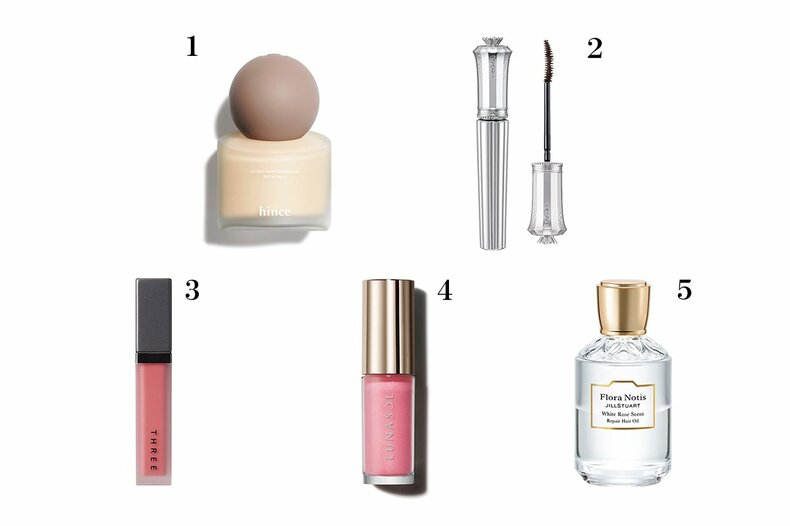 STEP.4 おくれ毛やポニーテールの毛先に5をさらりとつけて、さりげなくツヤ感を出す。