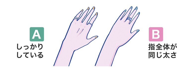 FASHION 公開日 2023.5.27 / 更新日 2024.2.13 AUTHORarweb編集部 【骨格診断】ストレート/ウェーブ/ナチュラルで診断!特徴、似合う&似合わない【トップス・ボトム・素材・柄】を知ってスタイルアップ♡ ファッション垢抜けコーデスタイルアップ華奢見えなんかダサいだから私はダサかったのか診断 SHARE 指の関節は… 関節のしっかり度合いは、指輪が関節で引っかかりやすいか、そうではないかがわかりやすい見分け方。 しっかりしている 指全体が同じ太さ