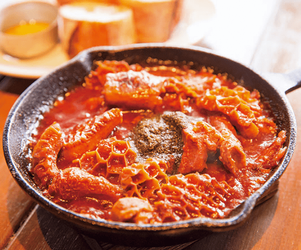 スパイシーなトリッパ煮込みには、ぷるんとしたマルチョウも一緒にかくれんぼ。
