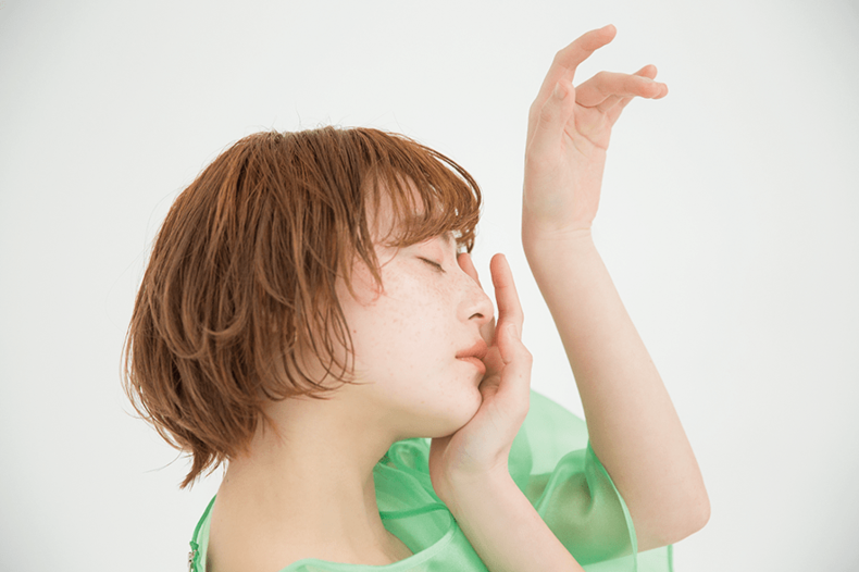 オレンジみのあるまろみカラーや透け感のある前髪など、透明感だらけなピュア顔ショートにうなじパワーを加えたら最強! 襟足はうなじがちょうど見えるように短めにカットしつつ、上からかぶさるように長めの毛束を残してワンカールを。メリハリのある動きでヘルシーな色っぽさをオン。