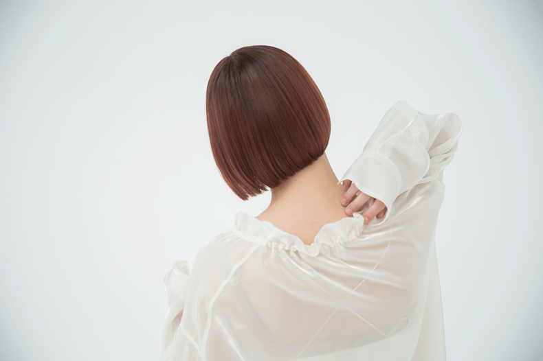 ストレートアイロンを中心〜毛先に通してまとまりのあるミニマルボブに。頭が小さく見えてスタイルアップ