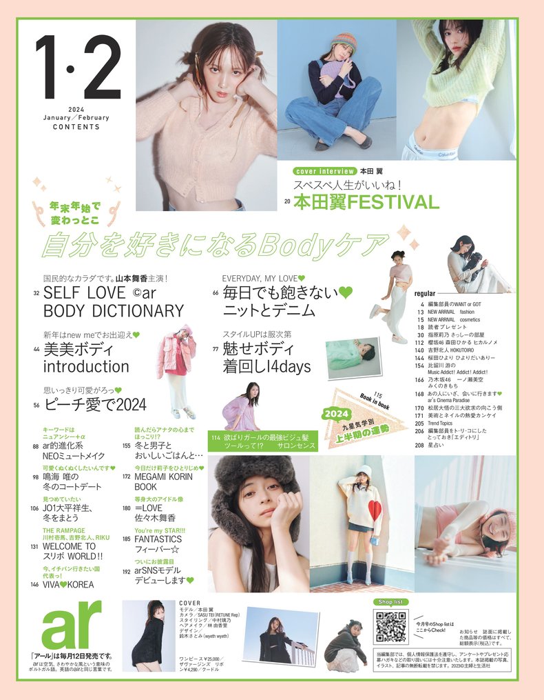 MAGAZINE 公開日 2023.12.12 AUTHORarweb編集部 ar1.2月号特大号 ar1.2月号特大号の特集は、冬のあげボディ♡ SHARE ar1.2月号特大号の特集は、冬のあげボディ♡ 表紙は、本田翼さんです! ar1.2月号特大号