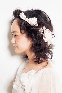 ずっと幸せでいられますように…そんな願いを込めて、髪の上にはキラキラ星のヘッドドレスをセットイン!