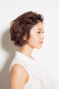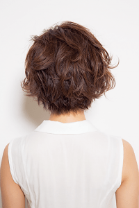 毛先を内、外ミックスでランダムに巻き、元気いっぱいに動かしたら、顔まわりをねじり編みに。