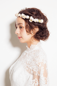 ドレス¥248,000(レンタル価格)、花かんむり(参考商品)/ウーアンジュ