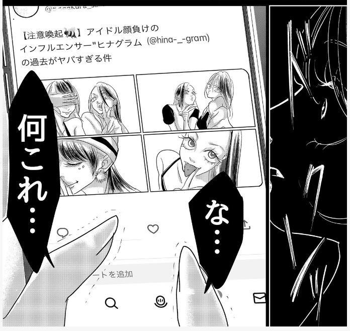 一見キラキラしてみえるインフルエンサーの光と闇を描いた本作品。カレンとさくらの出会いから、なんだかモヤモヤさせられるさくらの行動、憧れインフルエンサーの壮絶な過去や、そしてカレンのぐずぐず(⁉)な恋愛模様まで…。「こんなことって本当にあるの⁉」と思わせられるSNSの世界をのぞいてみませんか?(なんでも一部実話もあるとかないとか…)
