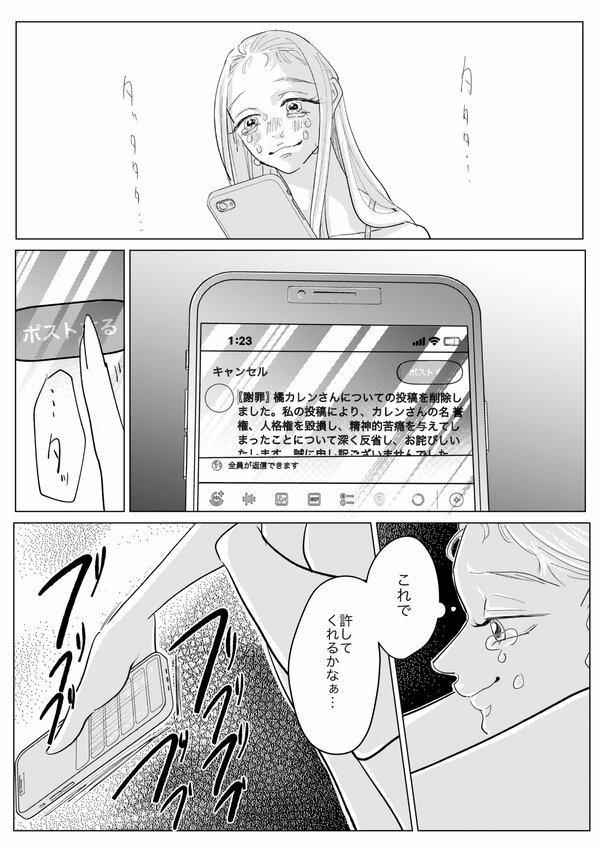 前回のあらすじ:学生時代にひどいいじめにあっていたさくら。実の姉に相談するも、帰ってきたのは「あんたが悪い」「また男に媚びればいい」など信じられない言葉で…。 彼女が歪んだ原因が明らかになり、とうとうカレンへの謝罪を試みるさくらだが…!?