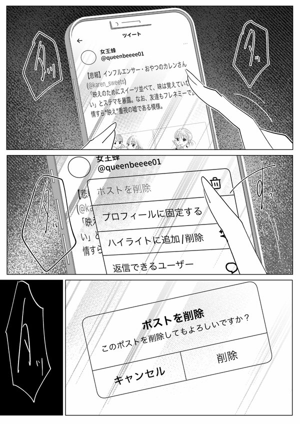 フォロワー数、いいね数、コメント数…。常に数字を背負ってSNSの投稿を続けるインフルエンサーのリアルを描く漫画連載「あなたの♡がなくても」。フォロワー2万人のスイーツインフルエンサーの橘カレン(27)が足を踏み入れた“SNS沼”とは…?