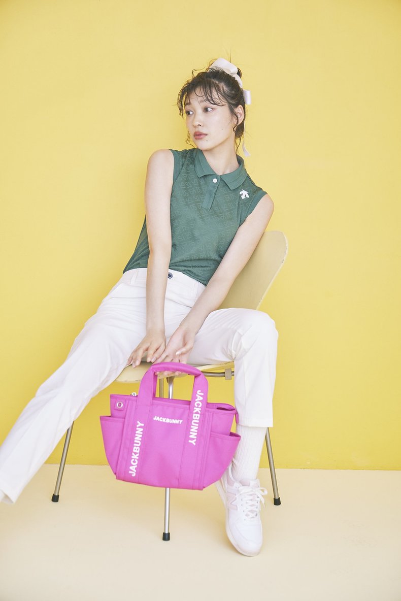 涼しげ美人なノースリ×白パンコーデはメンズウケ必至。さりげなく浮かび上がるジャカードが、爽やかさの中に洗練されたリッチ感を演出してくれます。アップヘアに巻いたピンクリボン&ピンクバッグでガーリーな可愛さも意識して♡