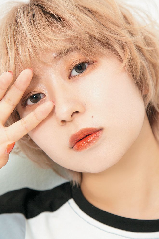 華やかなブロンドとパーマっぽいくしゅっと感がおしゃれ。ショートウルフで襟足はやや長めに残しつつ、前髪とサイドをラウンドでつなげて丸みのあるマッシュにカット。ベージュに少し紫ピンクを入れた黄ばみのないホワイトベージュで、キレイなブロンドヘアに。肌色の透明感がマシマシになってくれるのも高得点!