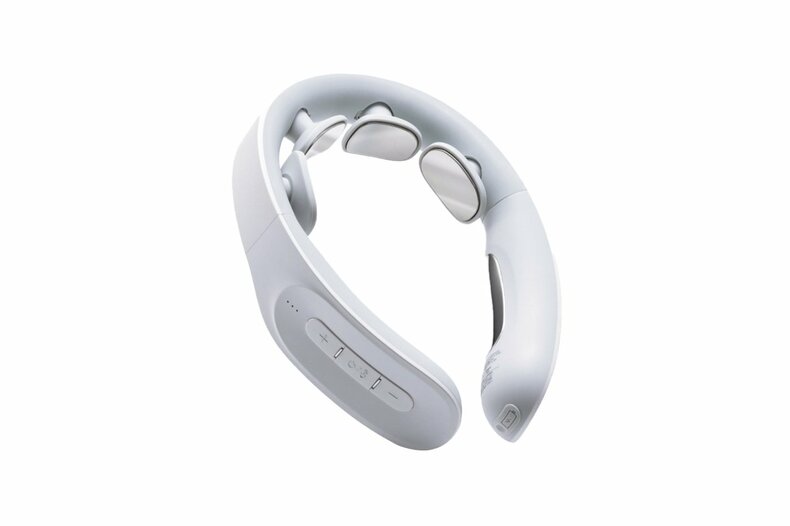 後方や側面に配置された6枚のパッドが首の血行を促進し、コリや痛みを和らげてくれる。気軽に使える家庭用低周波治療器。
