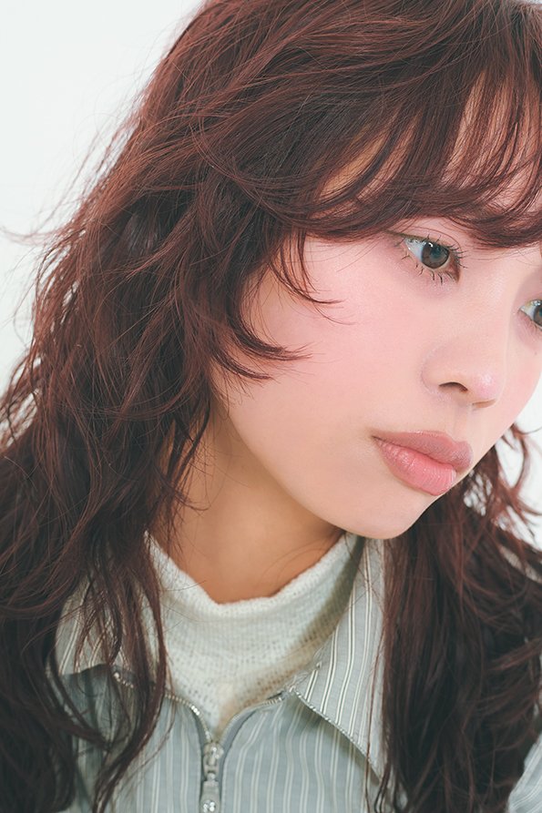 裾にボリュームがある重めフォルムをバランス補正してIライン気味に。根元をパーマでふんわりさせながらレイヤーを入れて全体のフォルムをシャープに仕上げることで、肩幅までも華奢に見えるのがうれしい♥ 顔まわりは、ラウンドカット+パーマで動きを出すことで顔の輪郭もすっきり!
