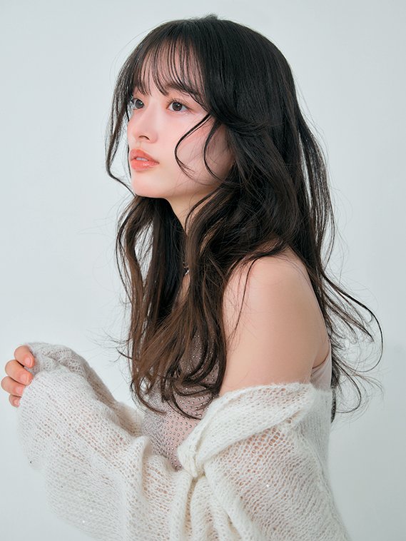 エアリー感のカギは、薄すぎず目にかかるくらいにカットした前髪。ベースは重くしすぎずに前上がりにカットし、揺れた時の印象を軽やかに。全体的にレイヤーを入れて、さらに顔まわりにはハラリとかかる細かなレイヤーで動きを出す。カラーは透けグレージュで、まろやか度アップに余念なし♥
