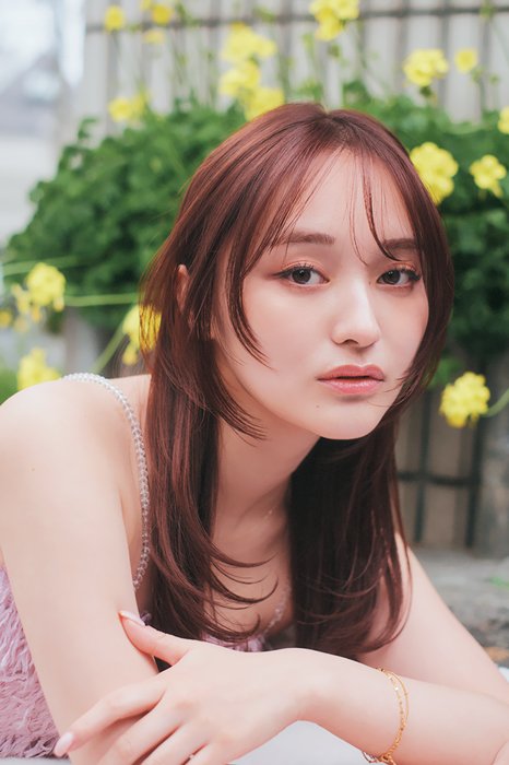 顔まわりの表情でちょっぴりクールに仕上げたストレートロング。輪郭を補正するため、レイヤーは高い位置から入れて動きを出しやすくし、長めの前髪からもみあげにかけてオーバル状につながるようにカットしてポイントをつくる。全体をハーフカールにすることでレイヤーを最大限に生かしたカジュアルロングに。
