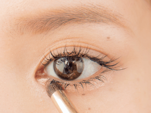 アイメイクは下まぶた中心で、目幅を下に広げるのがキモ。パールやラメで光をのせて、マスカラもたっぷりと。