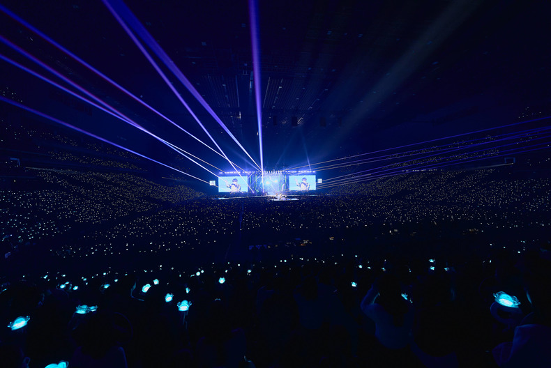 ステージ前の映像内で、リッキーの「準備はできた?」に合わせて会場のボルテージは最高潮。3階席まである会場を埋め尽くし、まるで星々のように会場を包み込んだ青い光が、今から始まる、待ち侘びた彼らのステージへの期待をより一層加速させます。